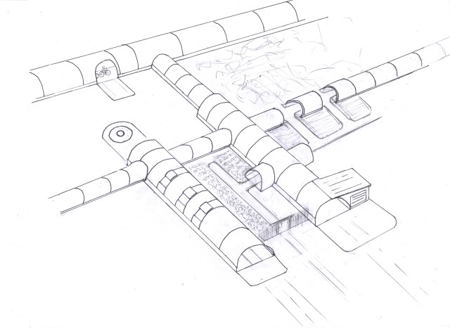 Greenway is a vision of an ecological neighborhood, where basic needs – food, water, shelter, transport, communications – are provided in ecologically sustainable ways with renewable energy. It’s a network of homes, greenhouses, garden, and businesses, connected by sheltered corridors. Housing is integrated with agriculture. Biology is integrated with technology. People are integrated with the cycles of the Earth.