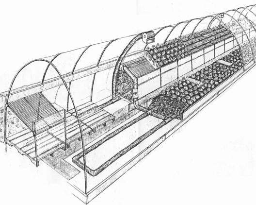 A bioshelter can be used for cold-season food production, limited mostly by how cold it gets at night in winter, and how much growing space is available with full sunlight over the whole day.