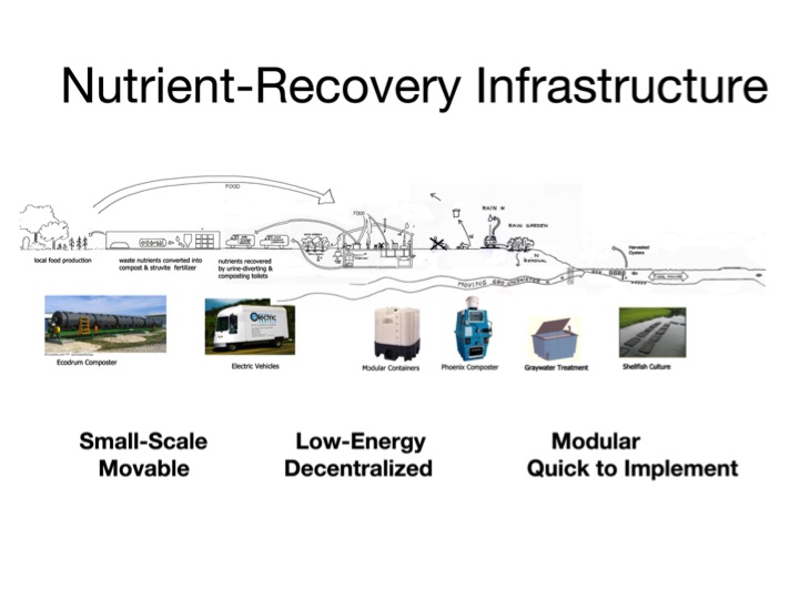In a natural ecosystem, nutrients cycle continuously, as minerals move from soil to plants to animals to decomposers, and back again to the soil. In our society, however, most nutrients are not recycled back to agricultural or natural ecosystems to continue sustainable biological cycles. Instead, the nutrients in food wastes and human wastes become pollutants in groundwater, streams , ponds, rivers, and the ocean.